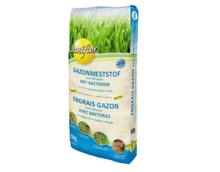 Een uitstekende organo-minerale meststof met bacteriën voor een mooi en gezond gazon. Deze meststof, met langdurige werking, voedt de grond en werkt indirect tegen mosvorming. Het mos neemt de kalium op, waardoor hij vergeelt en daarna afsterft. Het microbiologische leven ontwikkelt zich en de bodemstructuur fleurt op, wat resulteert in een goede wortelontwikkeling van uw gazon.