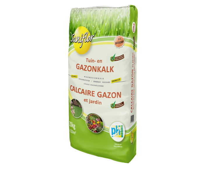 Tuin- en gazonkalk, toepasbaar in biologische culturen, is rijk aan calcium en magnesium. Bij een toepassing van deze kalk zal de pH-waarde van uw bodem langzaam stijgen. Deze korrelvormige kalk vermindert ook de vorming van mos in uw gazon. De sterke aanwezigheid van magnesiumoxide (14%) zal uw planten en gazon die mooie groene kleur geven. Niet toepasbaar op zuurminnende planten.